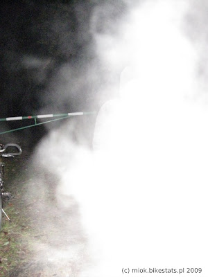Zaraz potem zaczyna padać i uciekamy do lasu, gdzie spędzamy 2h (po ciemku), ok 15km tu zrobiliśmy. Radek odpala dynamo i klops - urwany kabelek, hehe... a ja oprócz odblasków nie wziąłem nic, no bo przecież tylko "na godzinkę-dwie" jechaliśmy xD