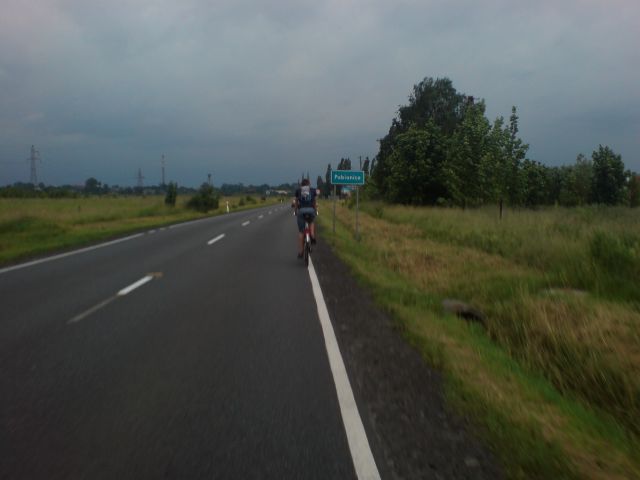 ... zmęczeni wracamy do Pabianic, zapełniając pobliskie kosze pustymi puszkami i butelkami. Od razu lżej. Po 10 km dopada nas deszcz, dodąjac tempo Michała mamy 2 godziny jazdy w deszczu.Patent na suche nogi