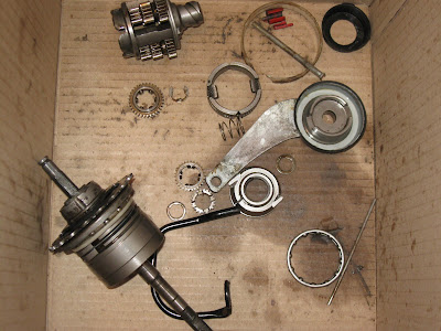 Piasta planetarna po rozbiórce, czyszczeniu, smarowaniu i ponownym złożeniu chodzi bardzo ładnie. Ile kłopotów sprawiły mi dwie sprężynki nie będę wspominał, tak dużo brzydkich słów nie zdarza mi się często rzucać...